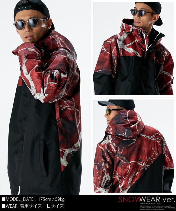 ハードな動きにスムーズに対応 動きやすさを追求したラフシルエット 素材:表地ポリエステル:100% 裏地ポリエステル:100% ※その他(トリコット+トリコット裏起毛) 耐水圧:13,000mm(検査済) 撥水度:最高等級5級 (※撥水度採点100点/超撥水コーティング加工) テフロン加工(汚れ防止機能) TPU裏地加工 上下共にベンチレーション装備 (※滑走時に暑い時はベンチレーション開けることでシチュエーションに応じた体温調節が可能。